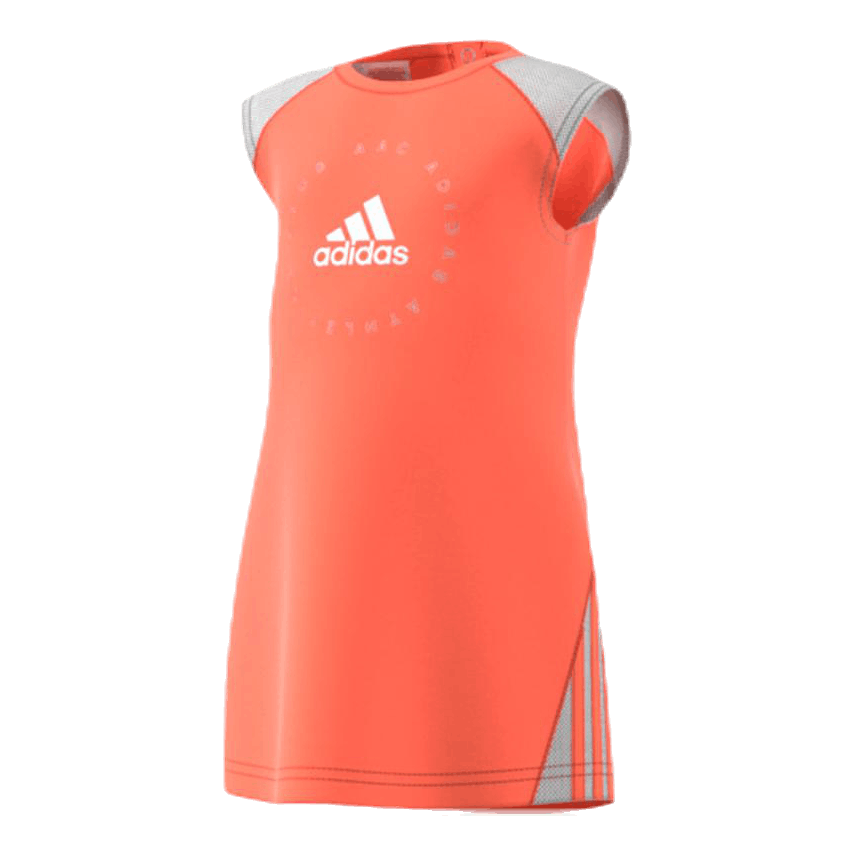 It’s never too early for the 3-Stripe life. This infant’s dress is a sporty and comfortable option for everyday play. It’s made of soft cotton jersey and shows off an adidas Badge of Sport on the chest.