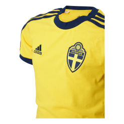A minimalist football t-shirt for Sweden fans.Show your love for Sweden in this juniors’ adidas football t-shirt. It’s made of soft cotton jersey to keep you comfortable while you practise your skills on the pitch or cheer for your team on match day. The federation crest next to the adidas Badge of Sport flashes your national team pride.