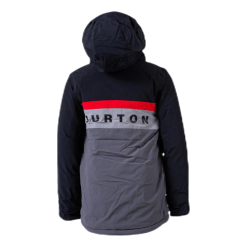 Burton jacket with 10,000 in water column and 5000 g of breath. Lined with thermacore, Tafeta lining, taped seams and room to grow system which means you can extend the sleeve after the first year of use. Lifetime warranty.