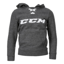 Hooded sweater with embroidered CCM logo. Decorative lacing with skating laces at the neckline. 50% polyester, 50% cotton