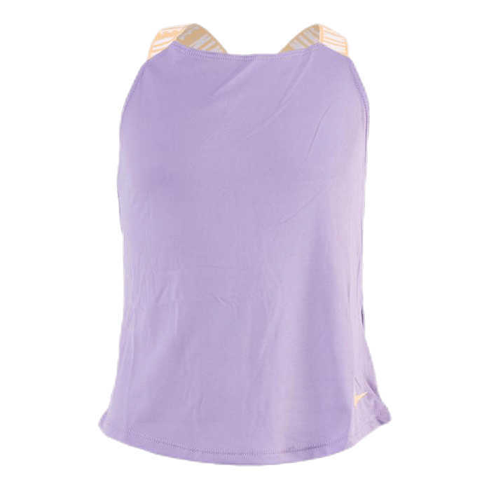 The Nike Dri-FIT tank has a soft, sweat-wicking fabric that helps you stay dry and comfortable. Elastic straps cross in the back so you can move freely.