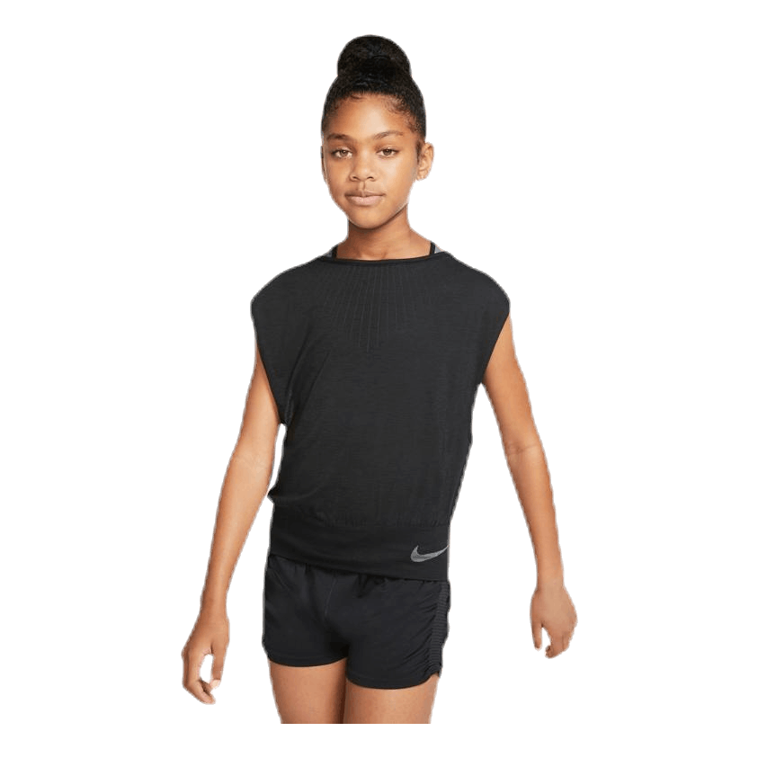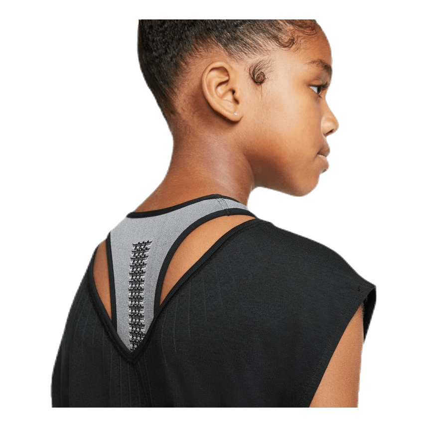 Wear the Nike Top forwards or backwards for a look that’s just right. Soft, stretchy fabric feels looser up top and fitted at the bottom. Gray sport top not included.