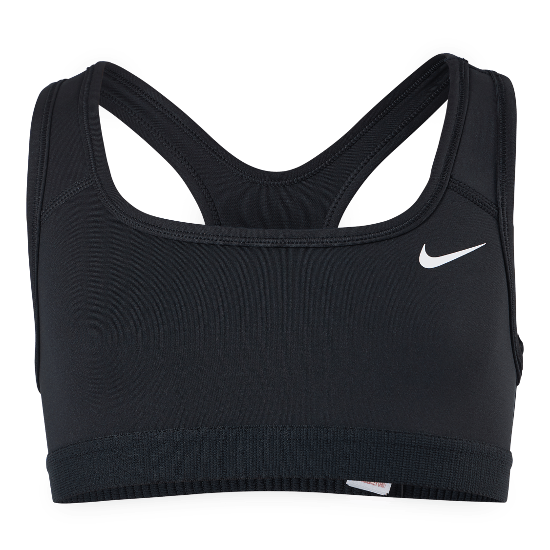 The Nike Swoosh Sports Bra is designed for comfort with smooth, sweat-wicking fabric to help you stay dry while you play. This product is made with at least 75% recycled polyester fibers.