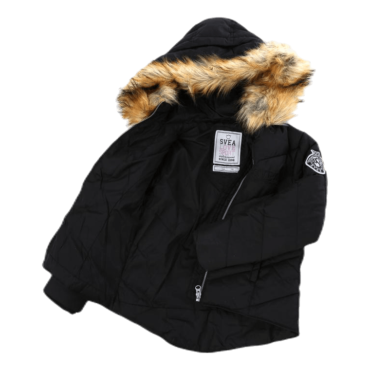 A shorter jacket that has a nice fit with down replacement and fur imitation on the hood. The jacket closes with a zipper and has two pockets on each side. Svealogga on the chest and Svea’s badge on the left sleeve.